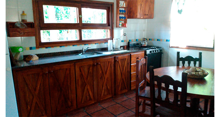 Planta Baja: Cocina Comedor, totalmente equipada, cocina con horno a gas, Microondas, Heladera, Pava Eléctrica, Tostador, Licuadora, Vajilla Completa. Living con TV por cable. Baño completo con ducha. Deck con Juego de mesa de jardín con 04 sillones individual y Parrilla. Excelente iluminación nocturna.
